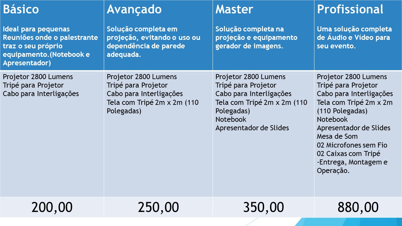 Pacotes para diferentes tipos de evento