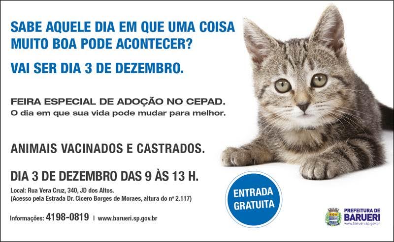 “Seu bichinho de estimação pode estar na feirinha de adoção do Cepad. Vários animais estão em busca de um novo lar e prontinhos para dar muito amor e carinho. São todos castrados, vacinados, vermifugados e microchipados. Sua família merece essa segurança”, incentiva a gestora do Cepad, Camilla Paniza de Camargo.