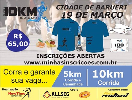 A corrida 10k BARUERI, será realizada no dia 19 de Maço de 2017, na cidade de Barueri em Alphaville.