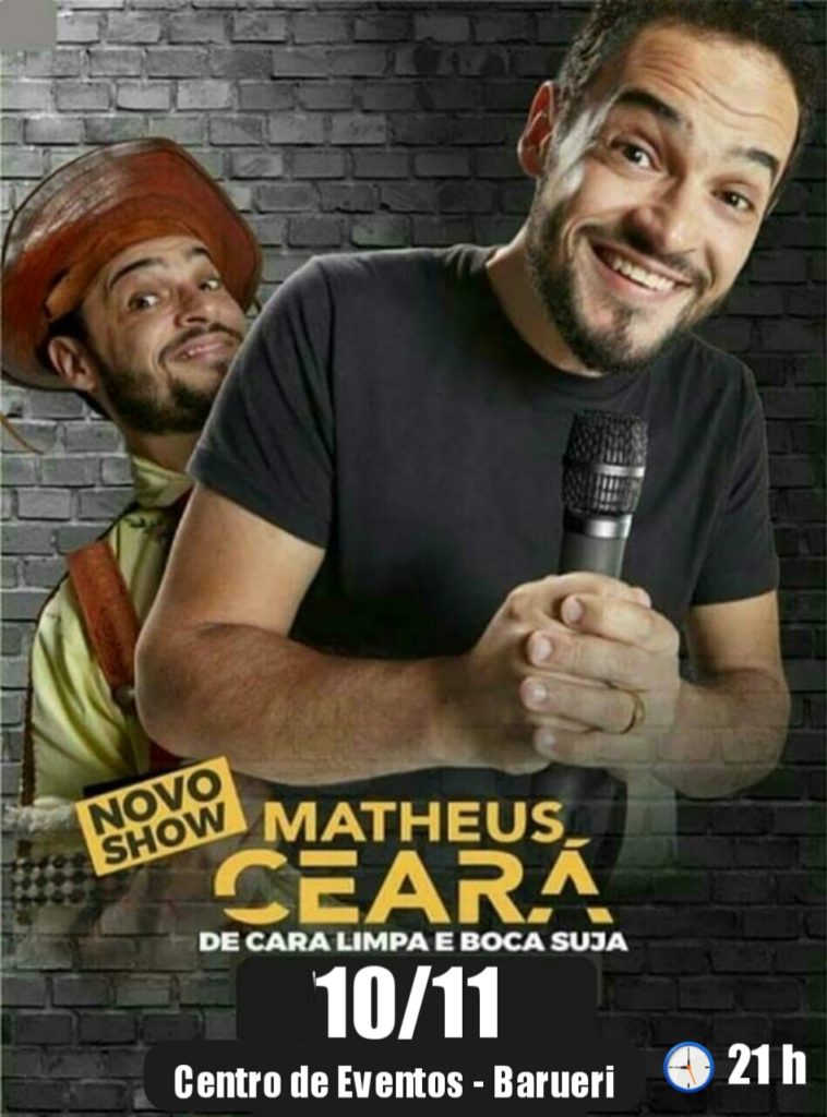 No seu novo show “META A MÃO QUE O DEDO É POUCO”, o humorista Matheus Ceará mostra sua melhor forma como o contador de piadas desbocado, sem as amarras do papel que o tornou famoso na TV, livre para contar suas histórias das maneiras mais hilárias.