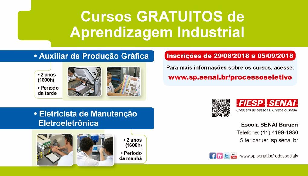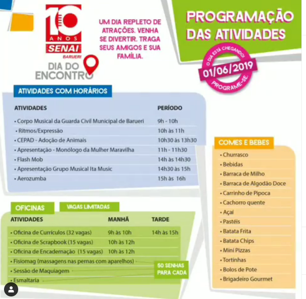 Dia 3/0utubro – Senai – Alameda Wagih Salles Nemer, 124 – Centro, Barueri, das 9h às 21h.